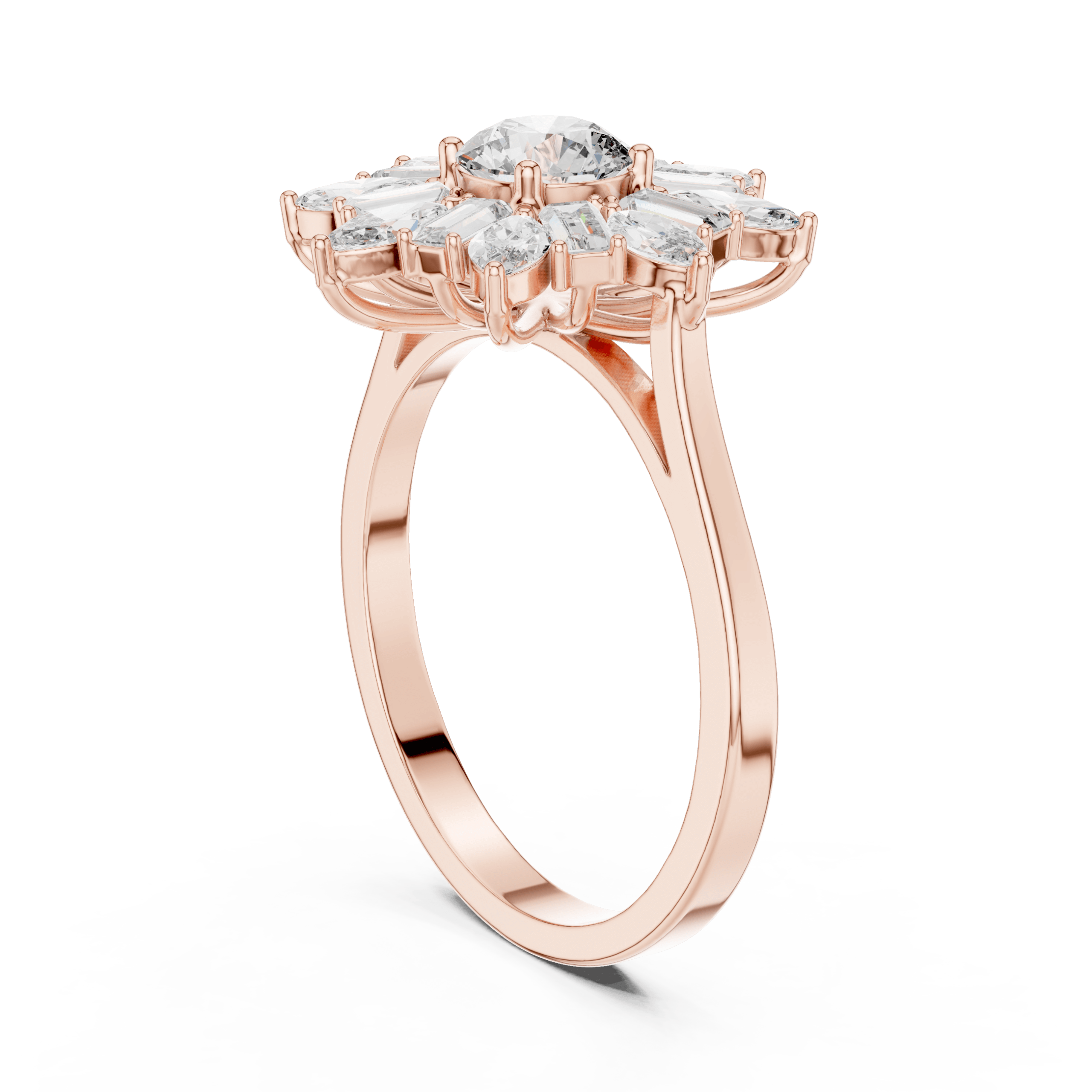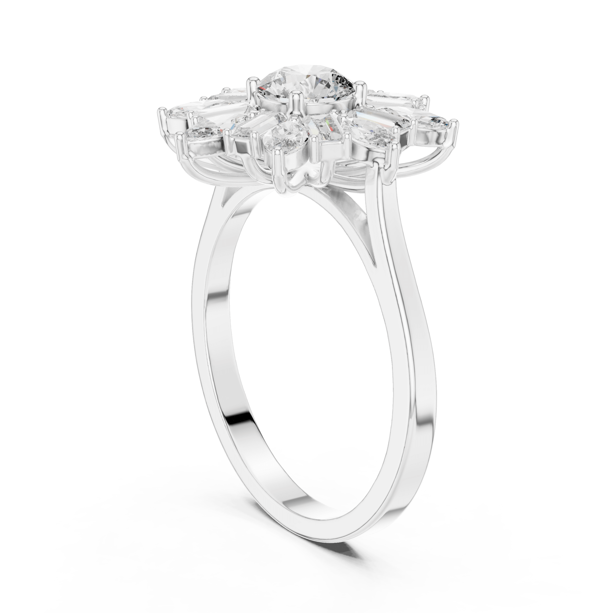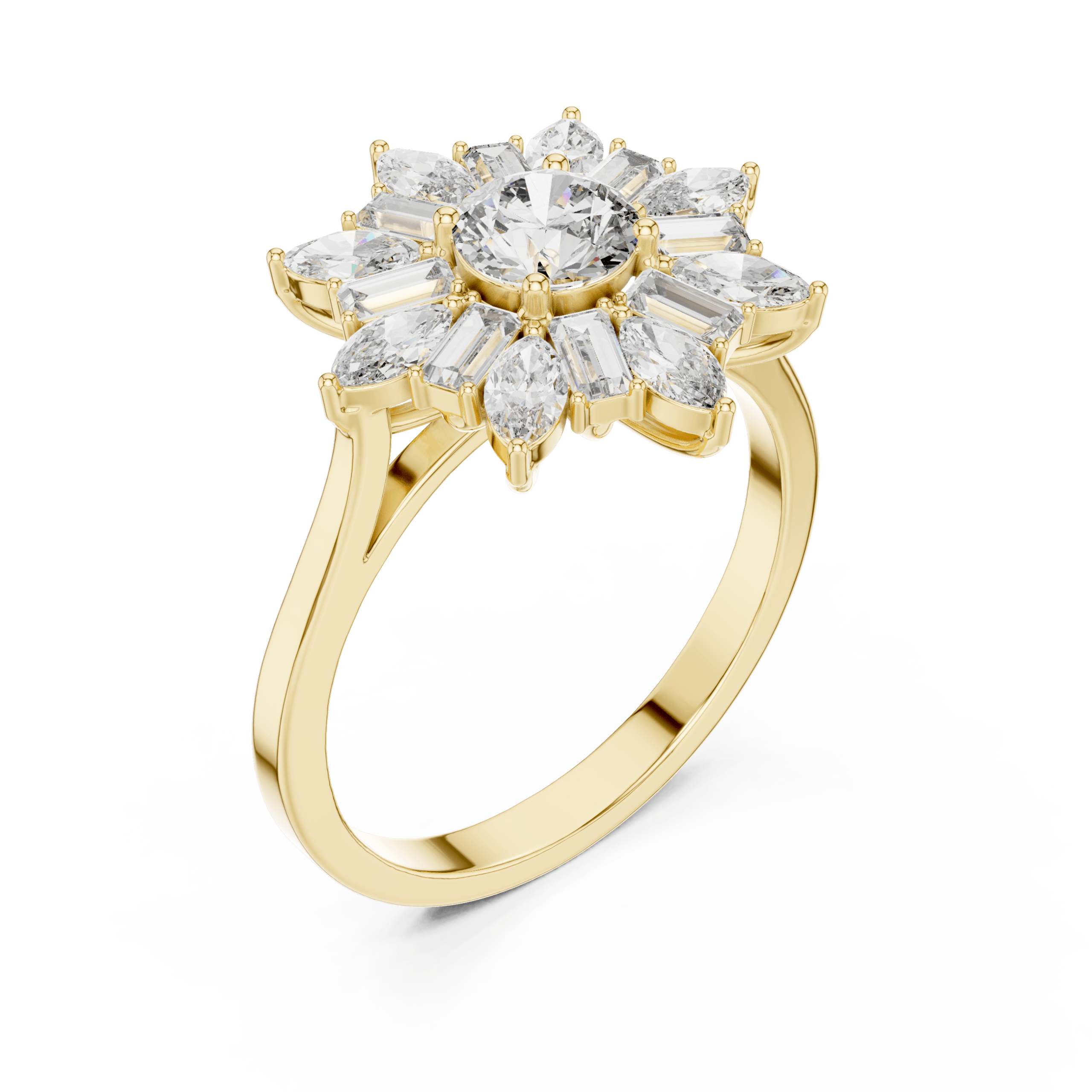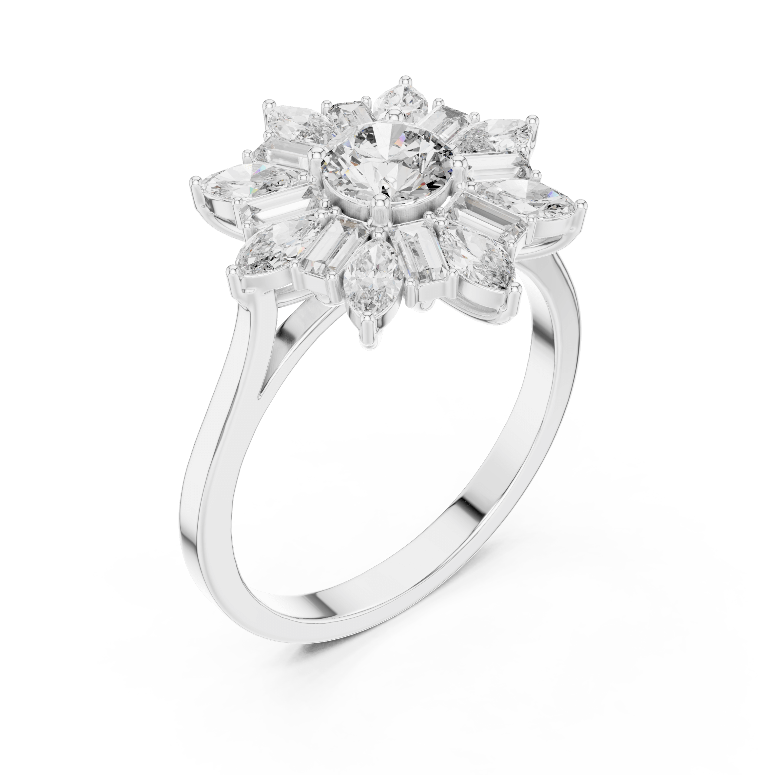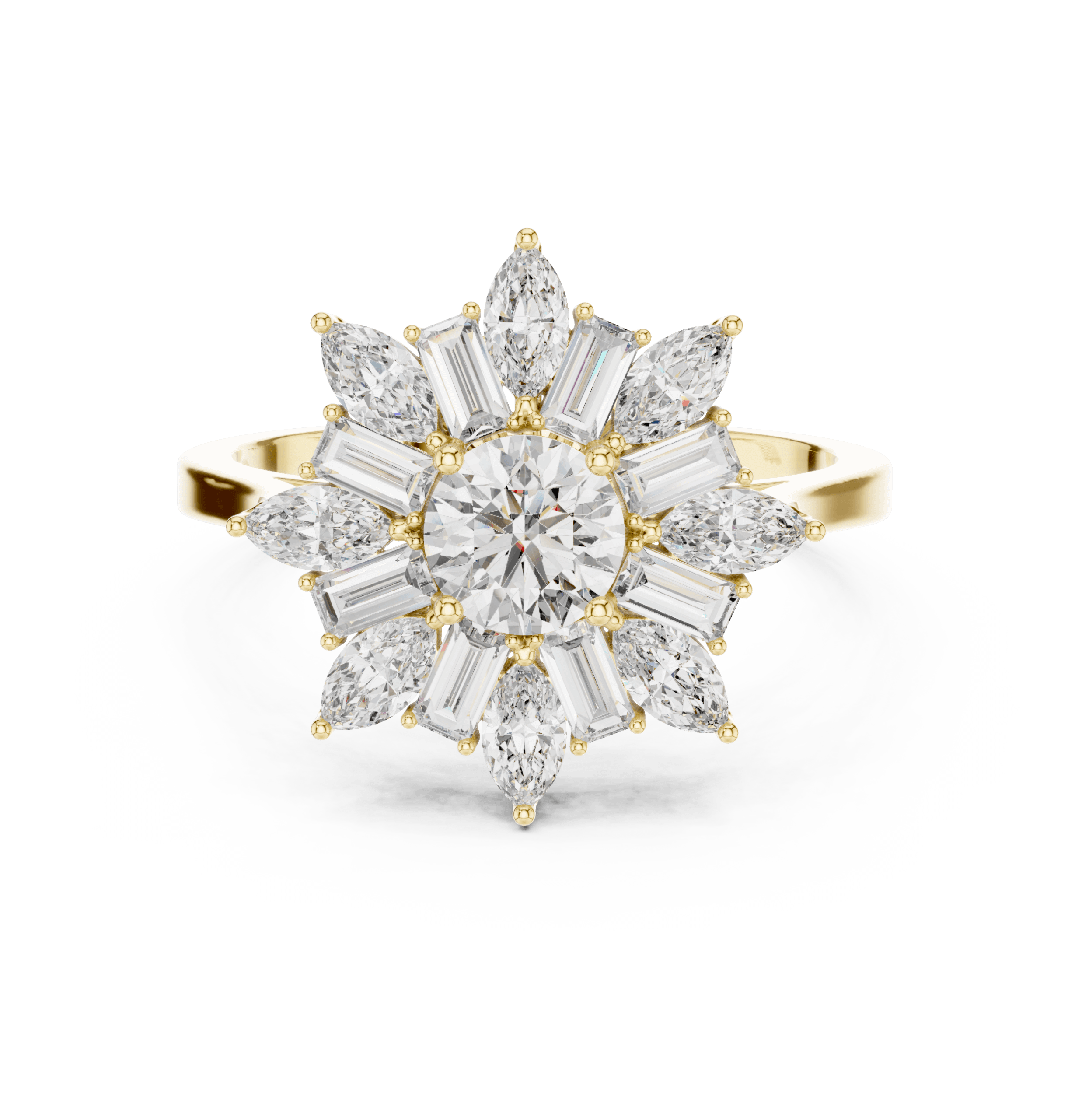 Celestial Starburst Round Marquise and Baguette Ring