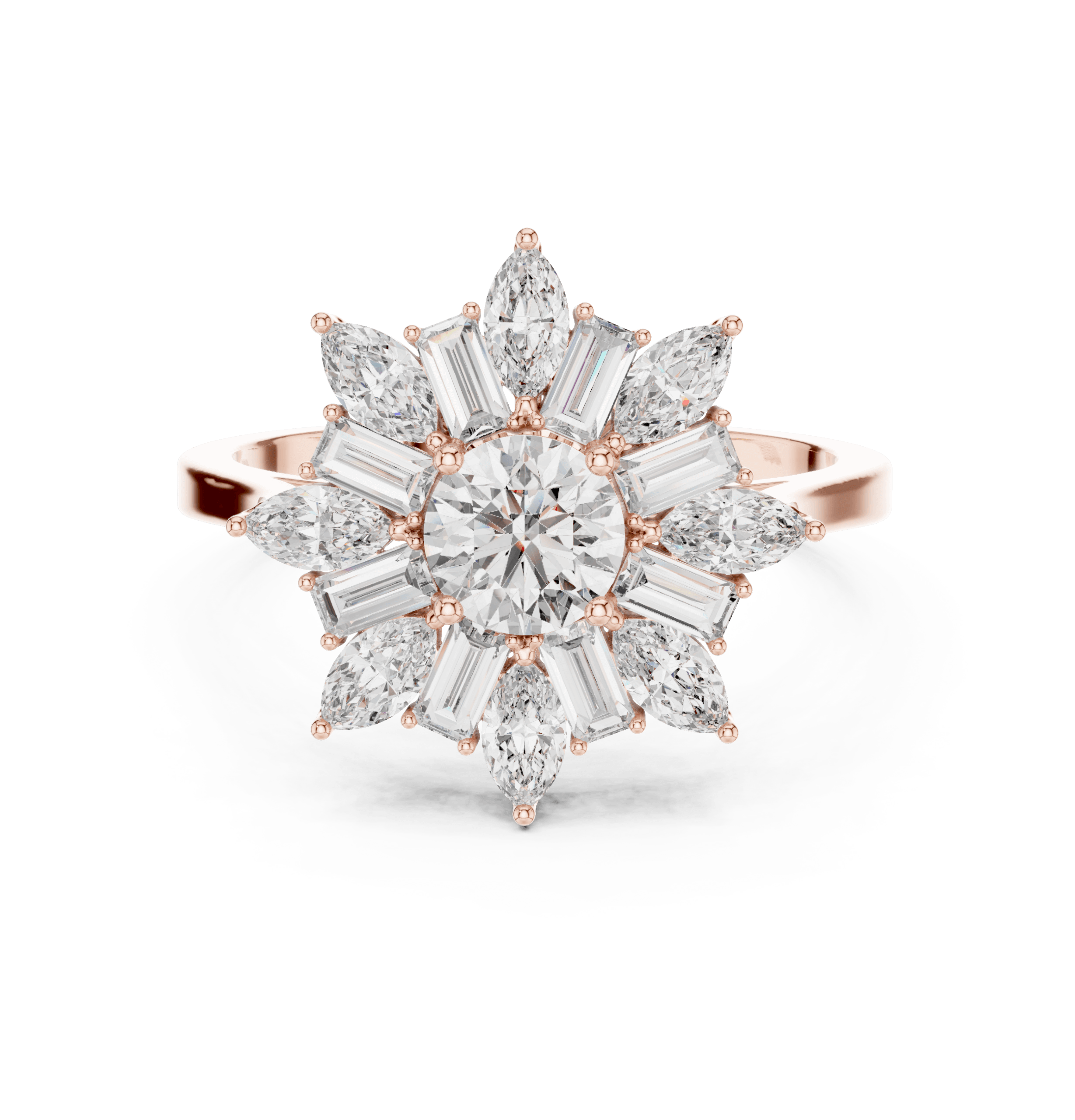 Celestial Starburst Round Marquise and Baguette Ring